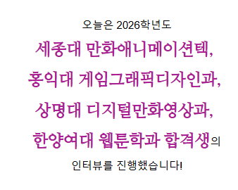 한양여대 웹툰학과 합격생 정선O입니다!