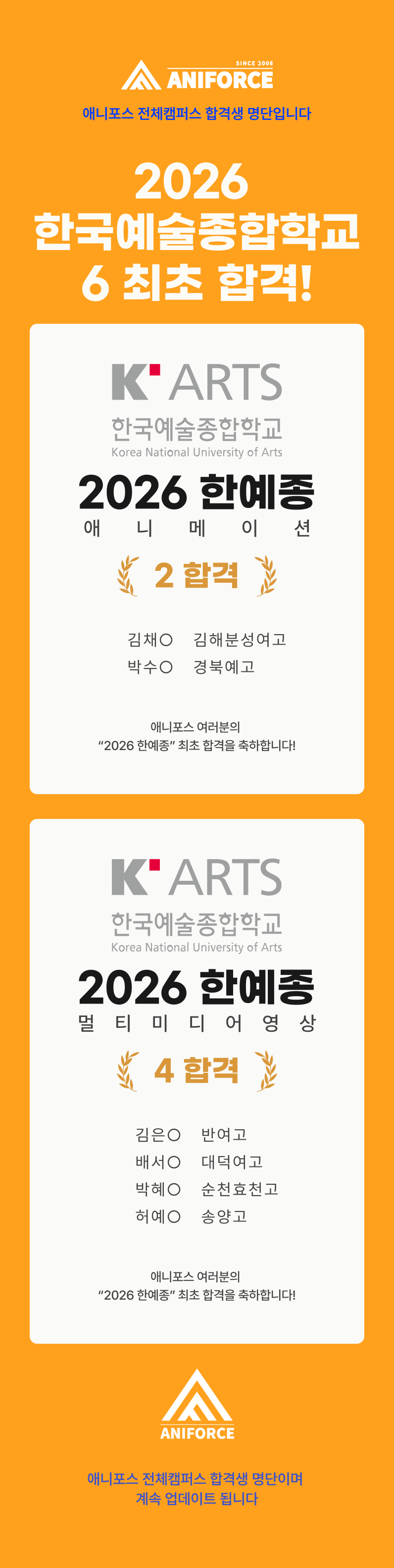 애니포스 합격생 여러분께
